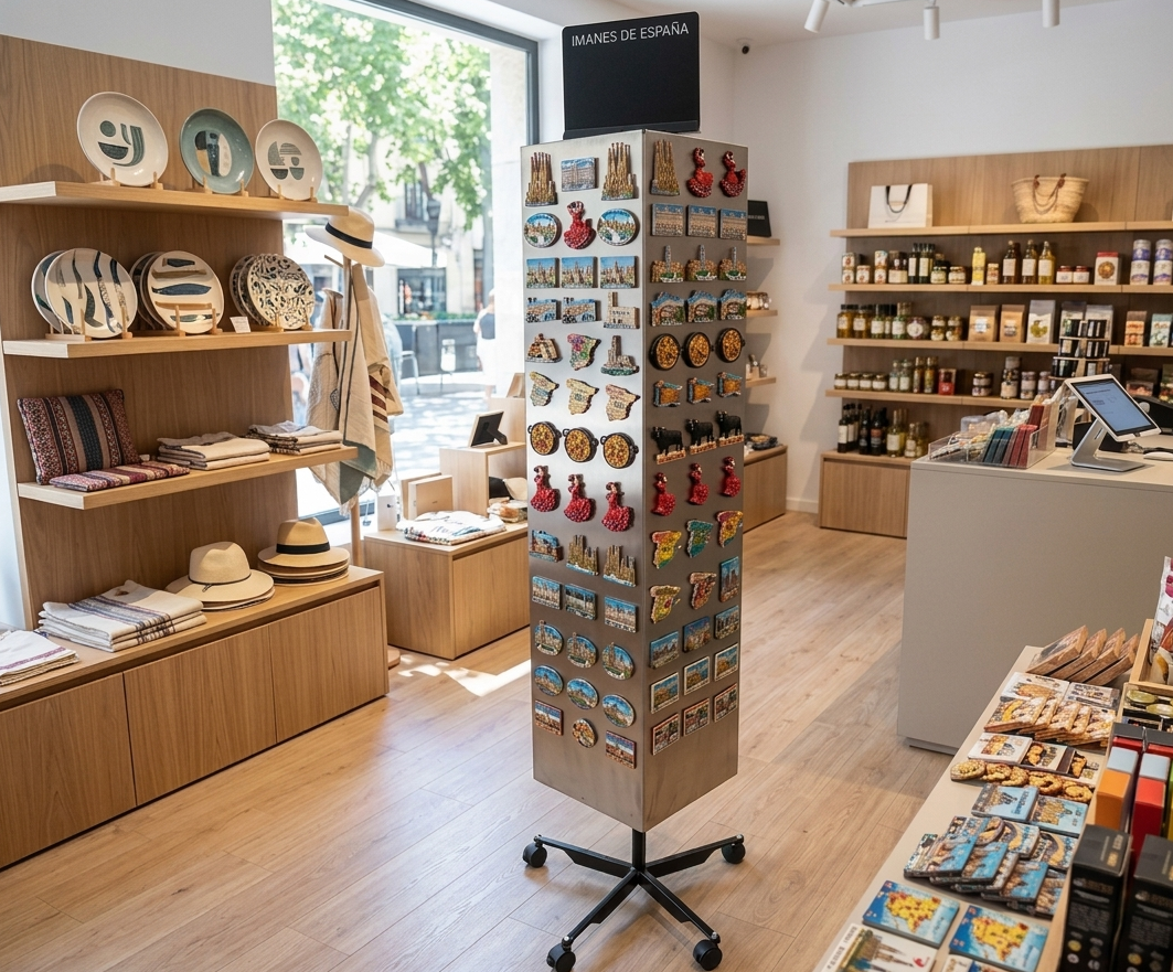Este modelo de expositor de malla destaca por su capacidad de adaptación inmediata. Al utilizar una superficie de rejilla, puede modificar la altura y separación de sus ganchos en segundos, adaptándose a nuevos lanzamientos o cambios de temporada. Si en su lugar prefiere que las caras sean de chapa el mueble se convierte en un expositor de imanes muy versátil.