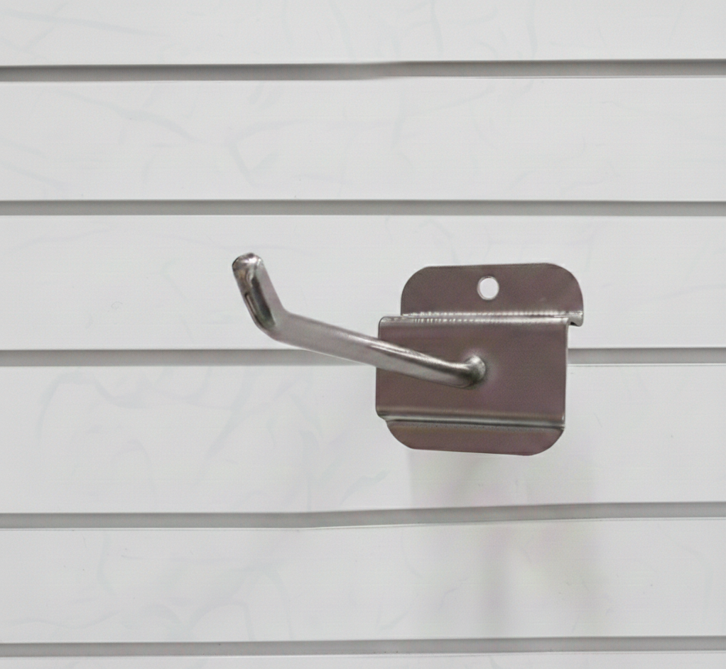 El Gancho Simple Ref. 11021 es un elemento indispensable para cualquier sistema de equipamiento comercial basado en paneles de lama. Su diseño robusto permite colgar una amplia variedad de artículos, desde accesorios ligeros hasta productos de mayor peso, garantizando orden y una excelente visibilidad para tus clientes.