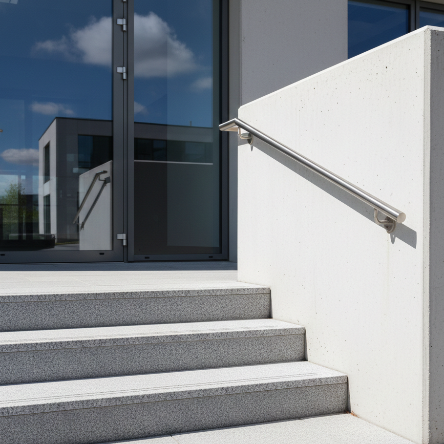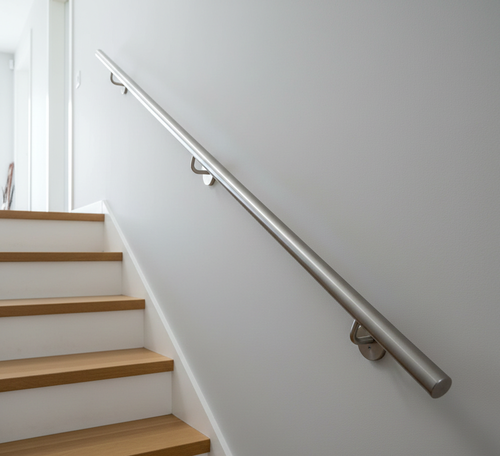Barandilla pasamanos en acero inoxidable de alta calidad. Resistente a la corrosión y fabricada bajo pedido con las dimensiones exactas que necesite. Acabados premium para interiores y exteriores.